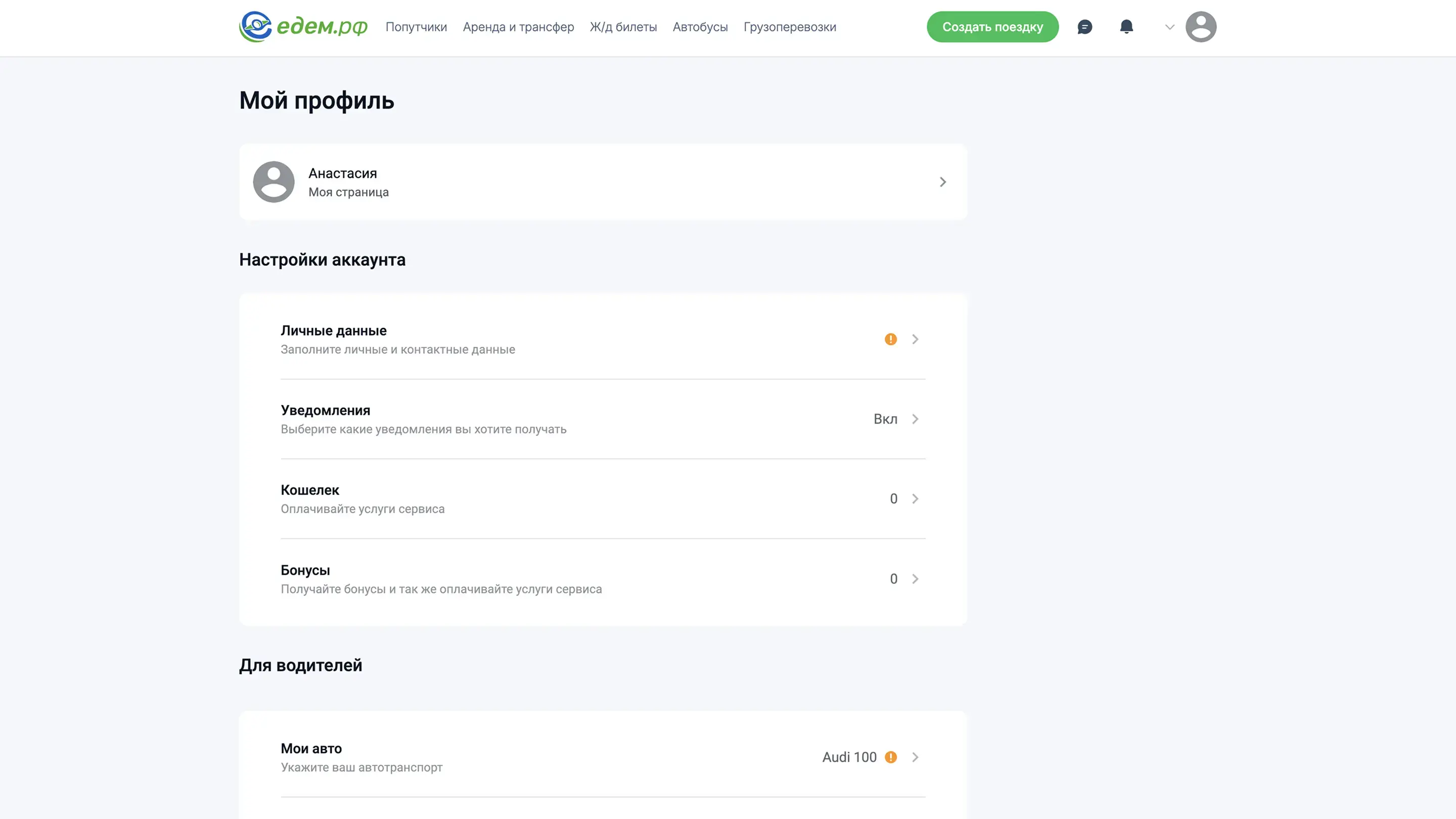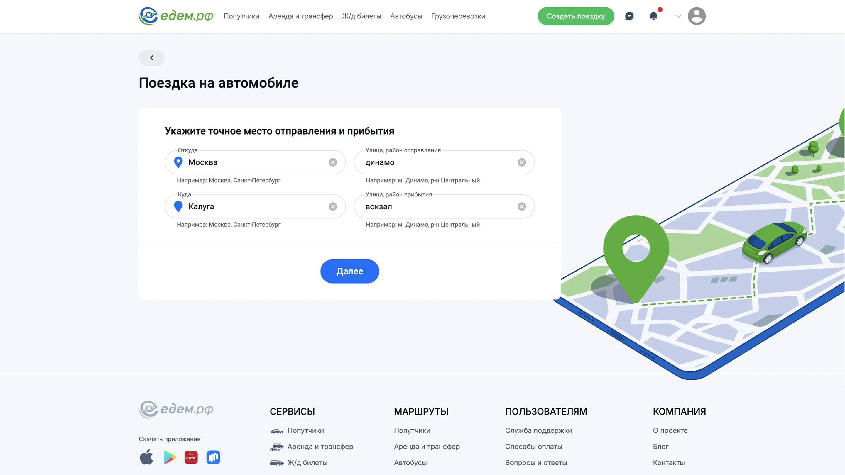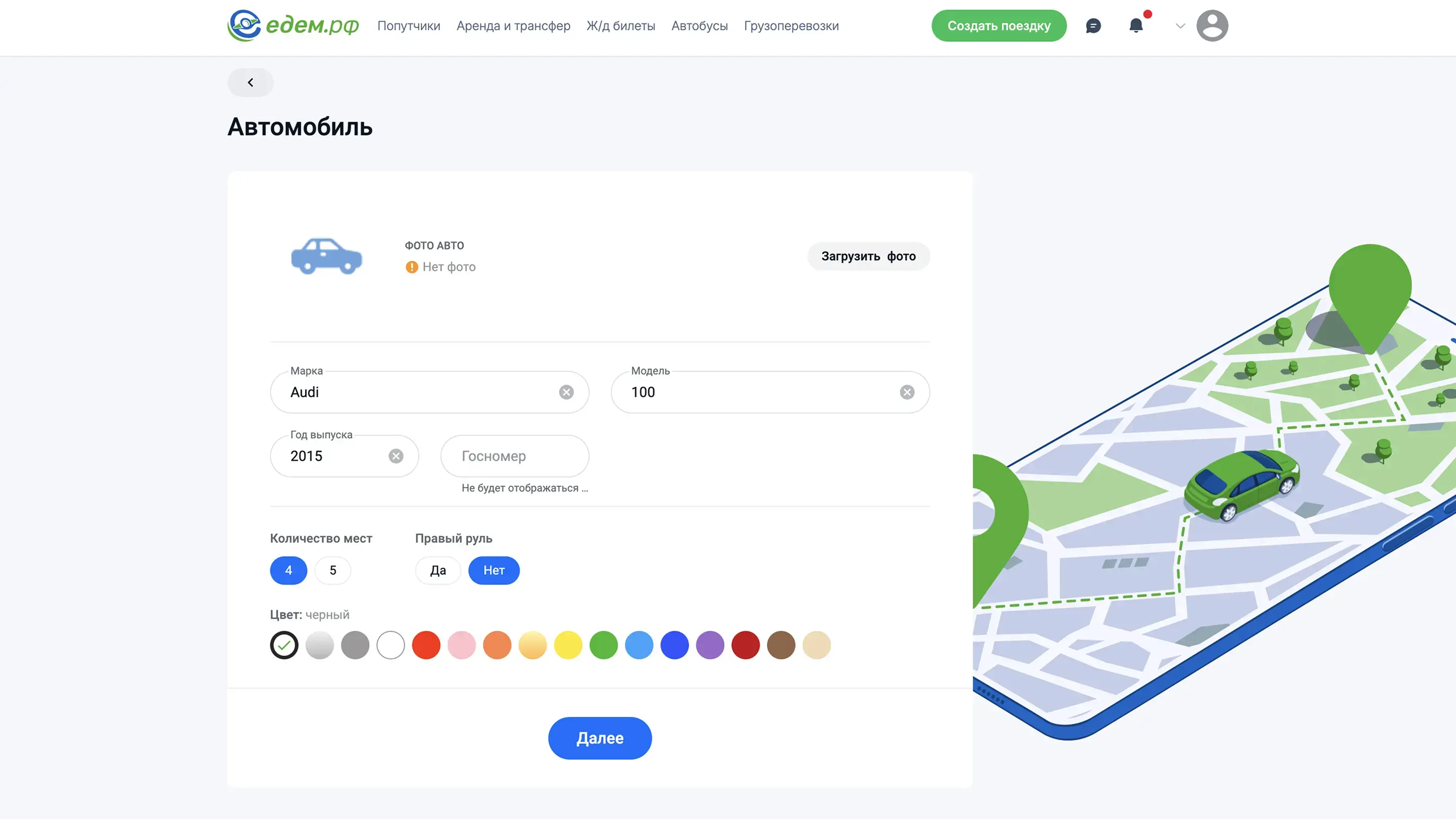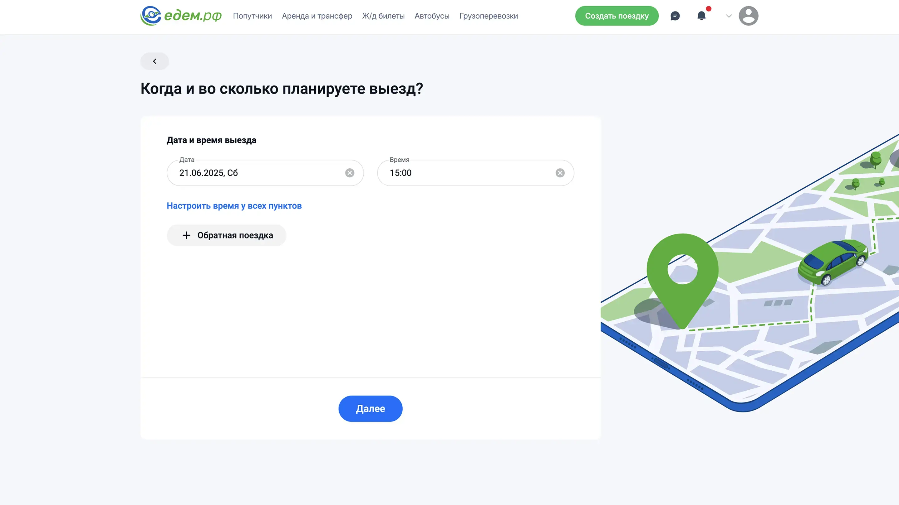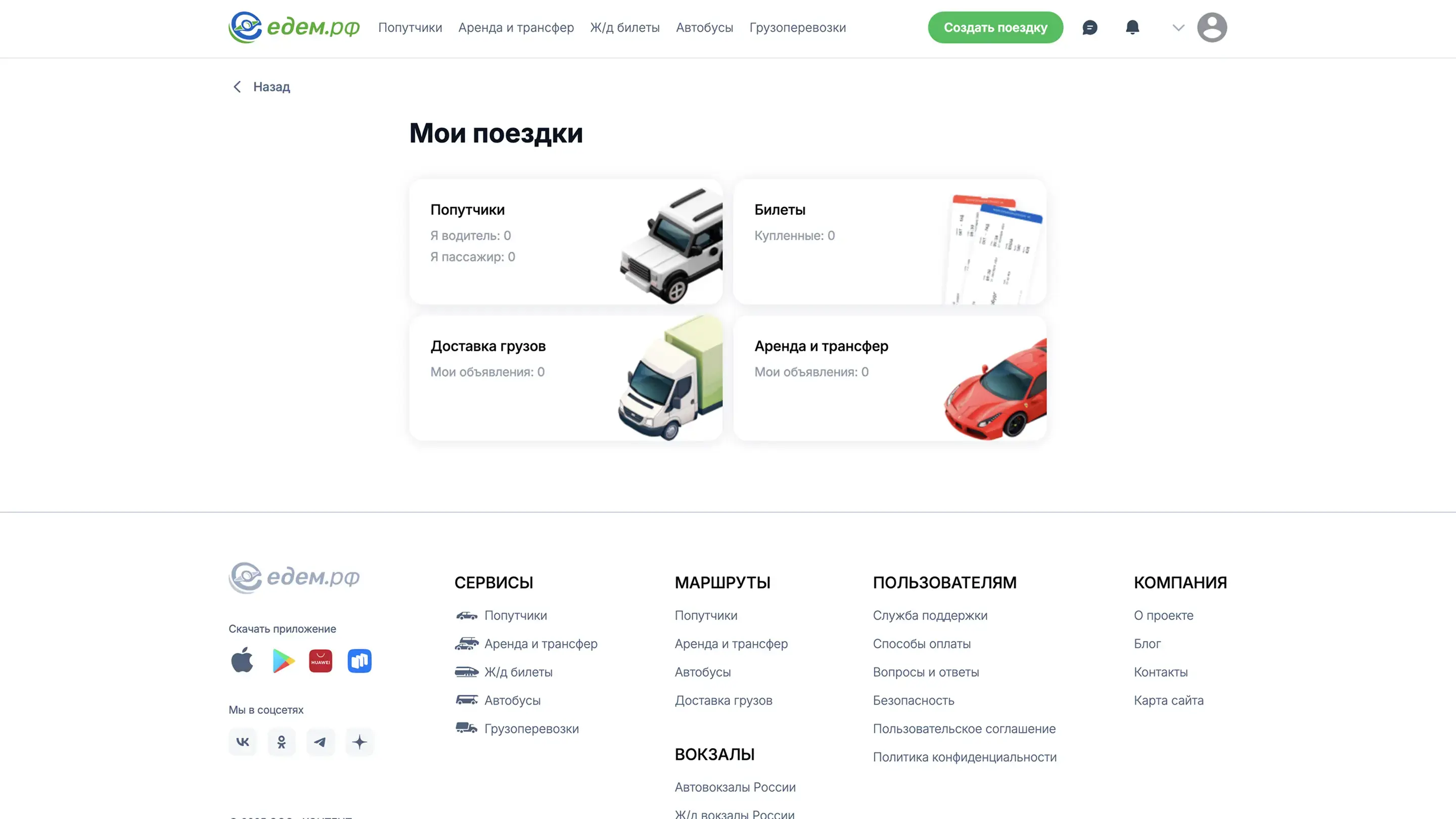 Создать поездку