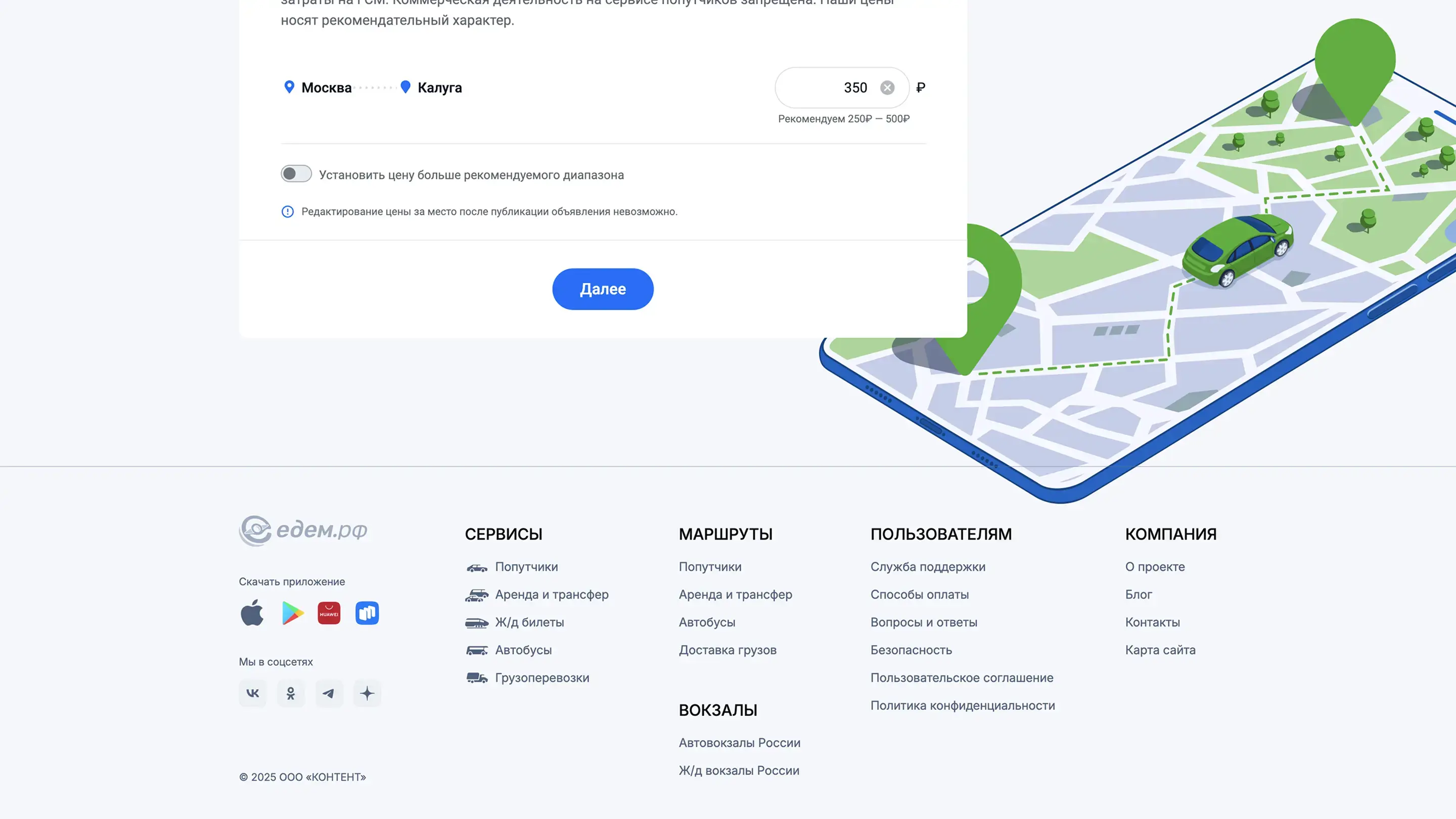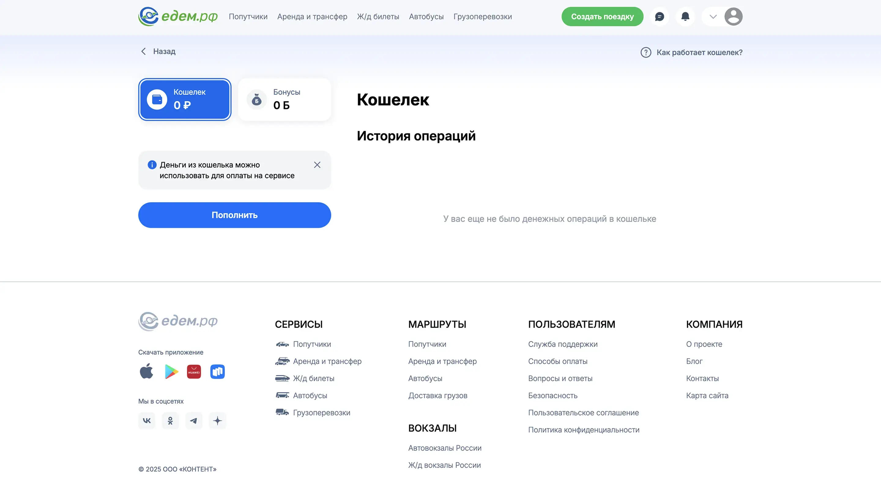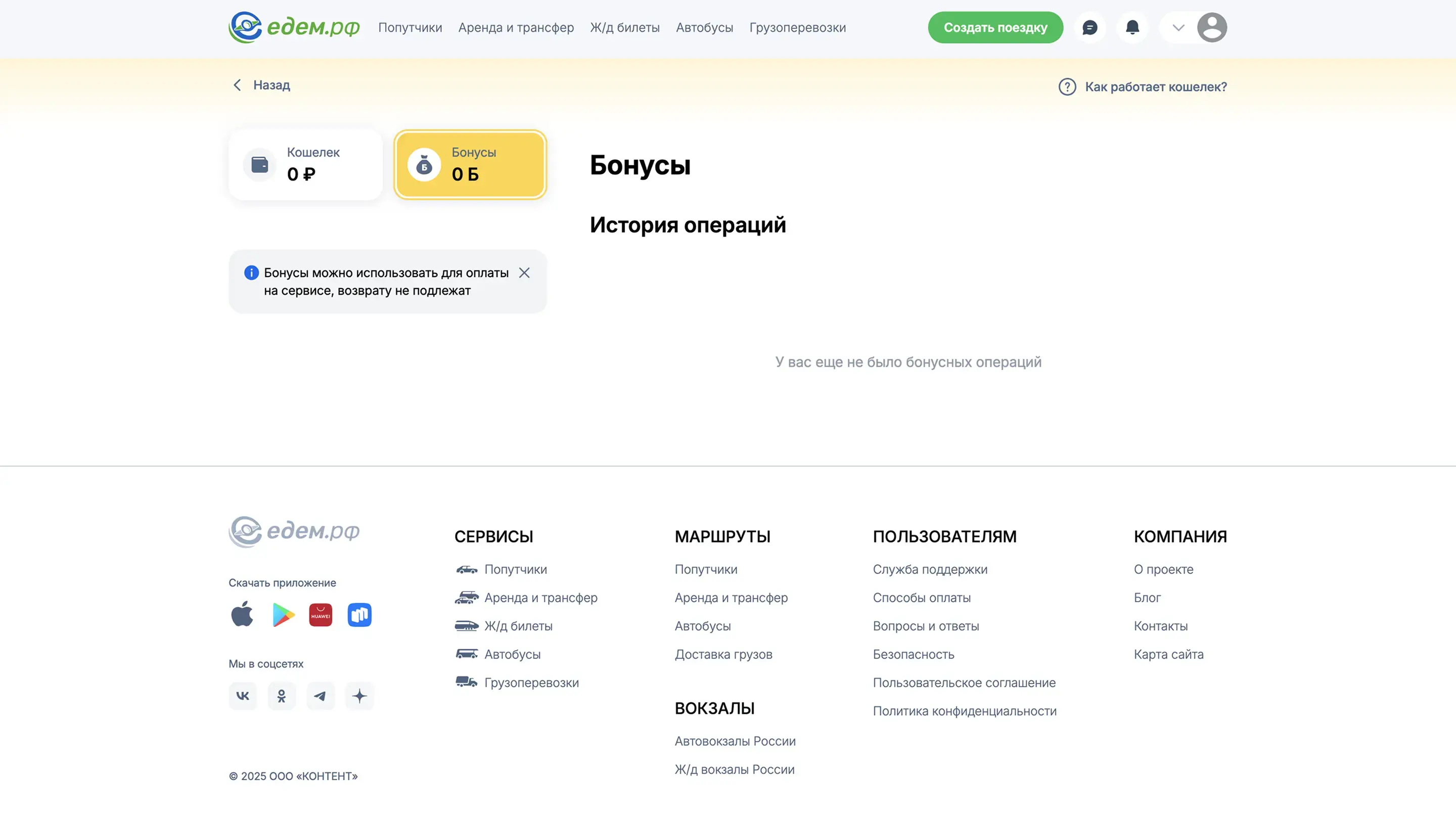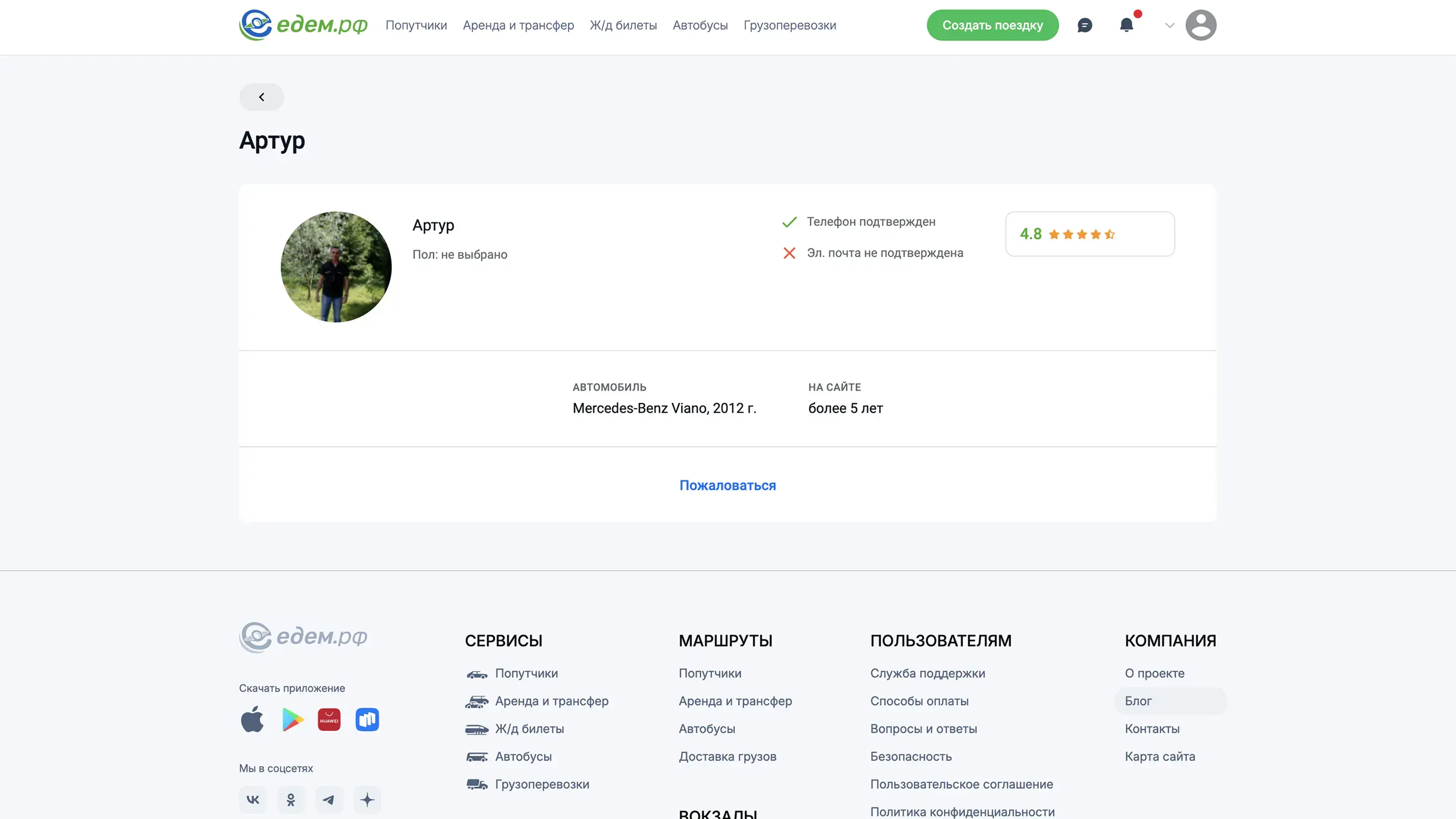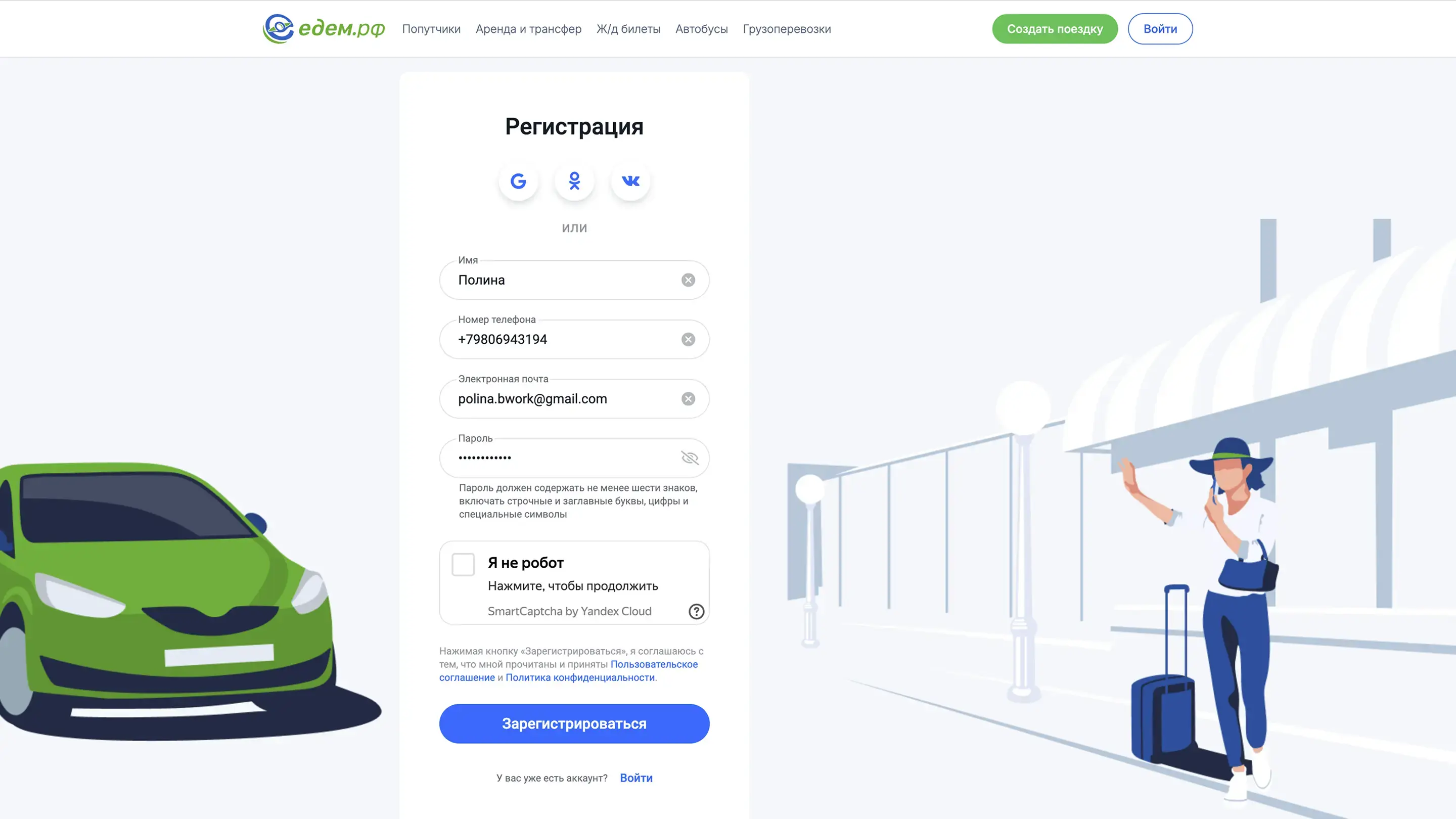 Создать поездку