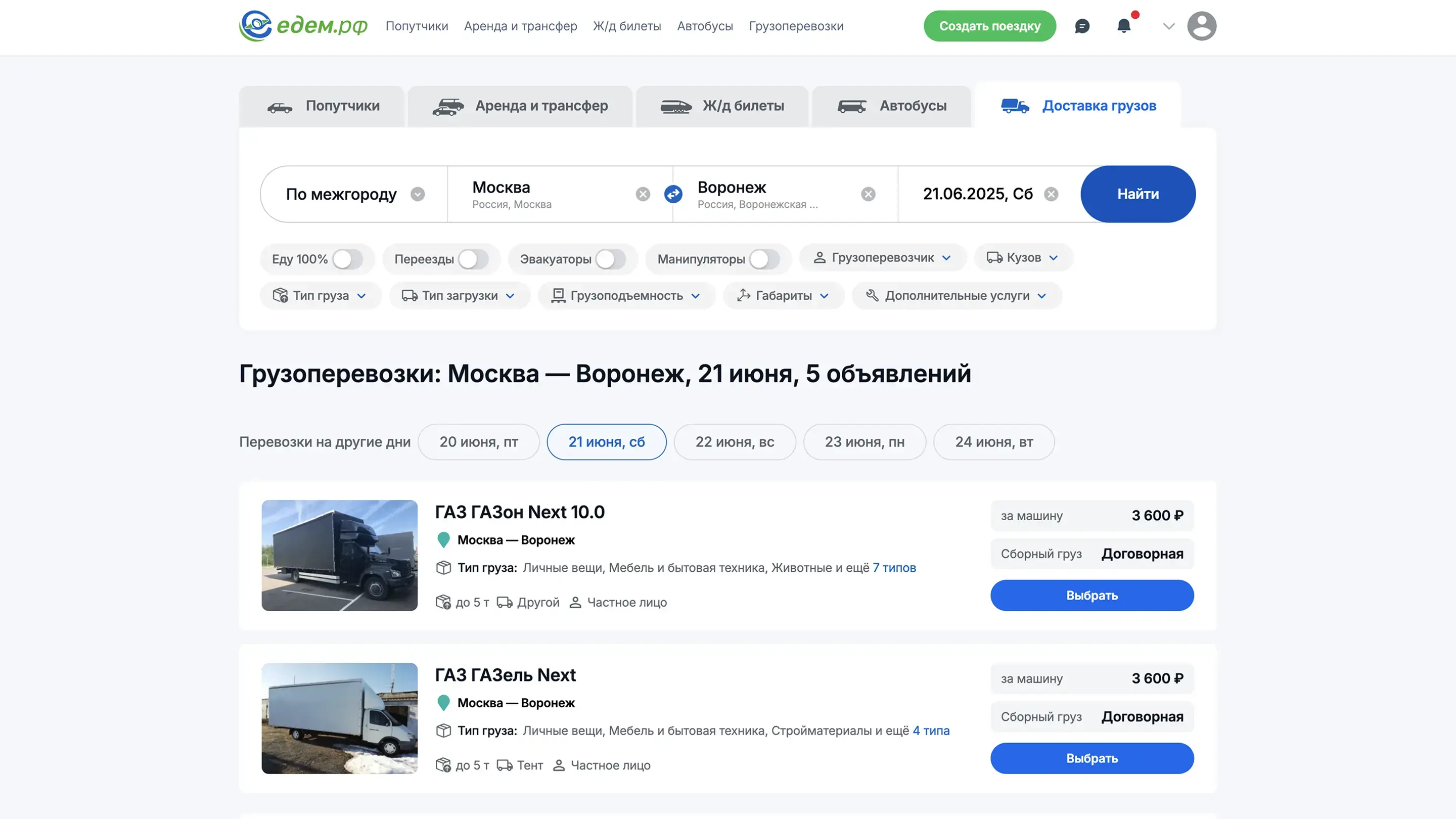 Поиск / Грузоперевозки