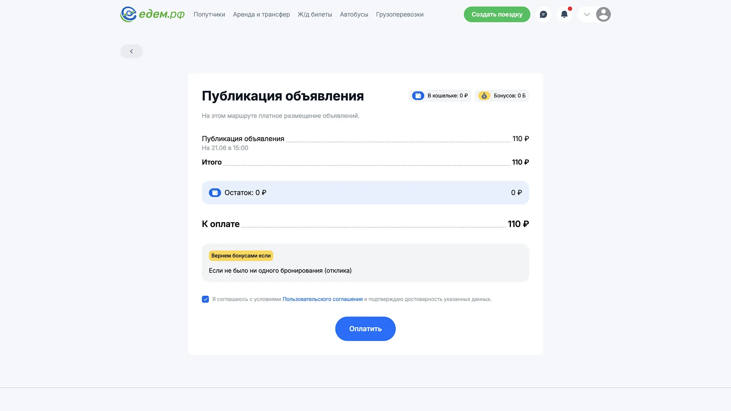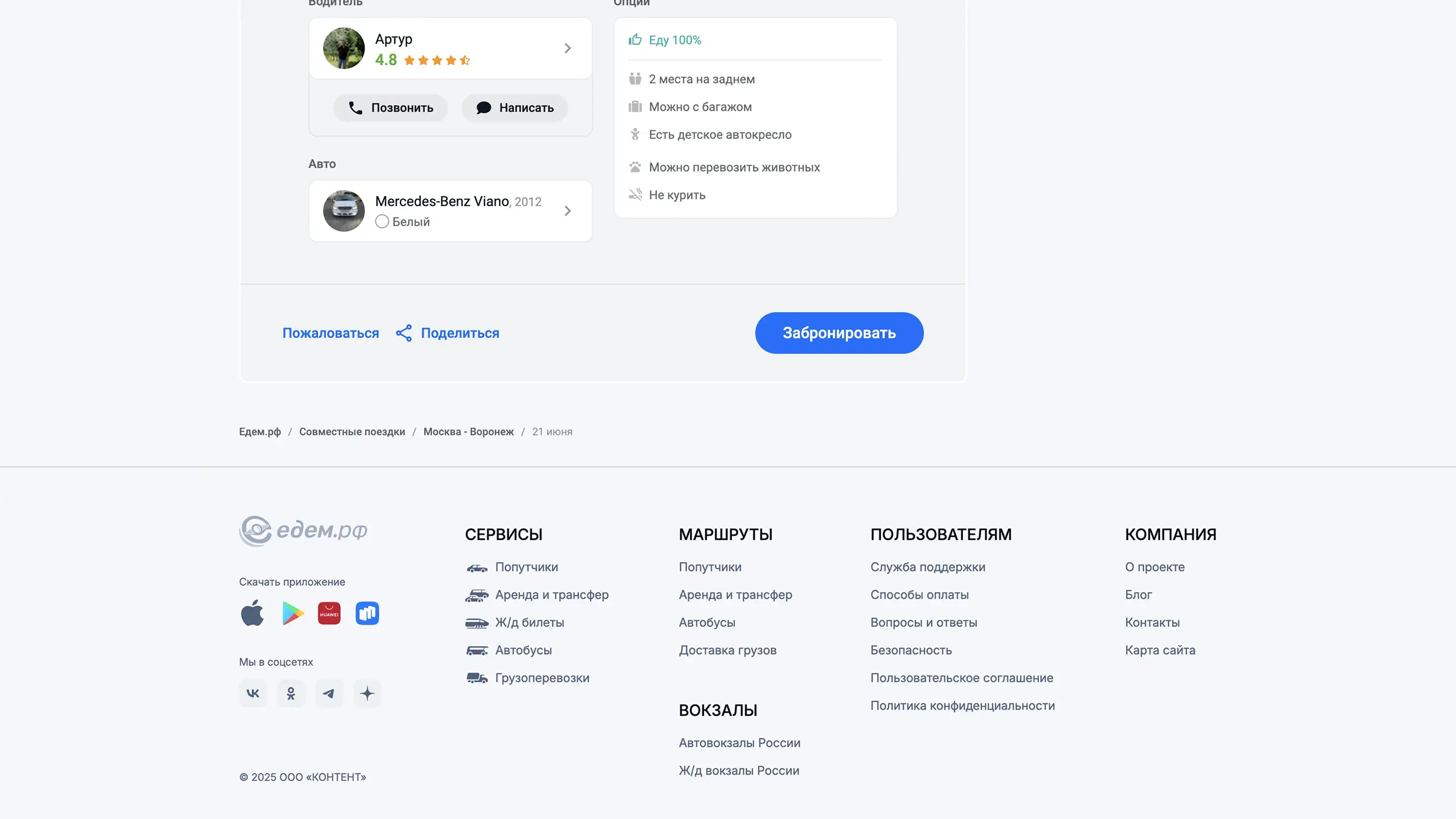 Бронирование поездки
