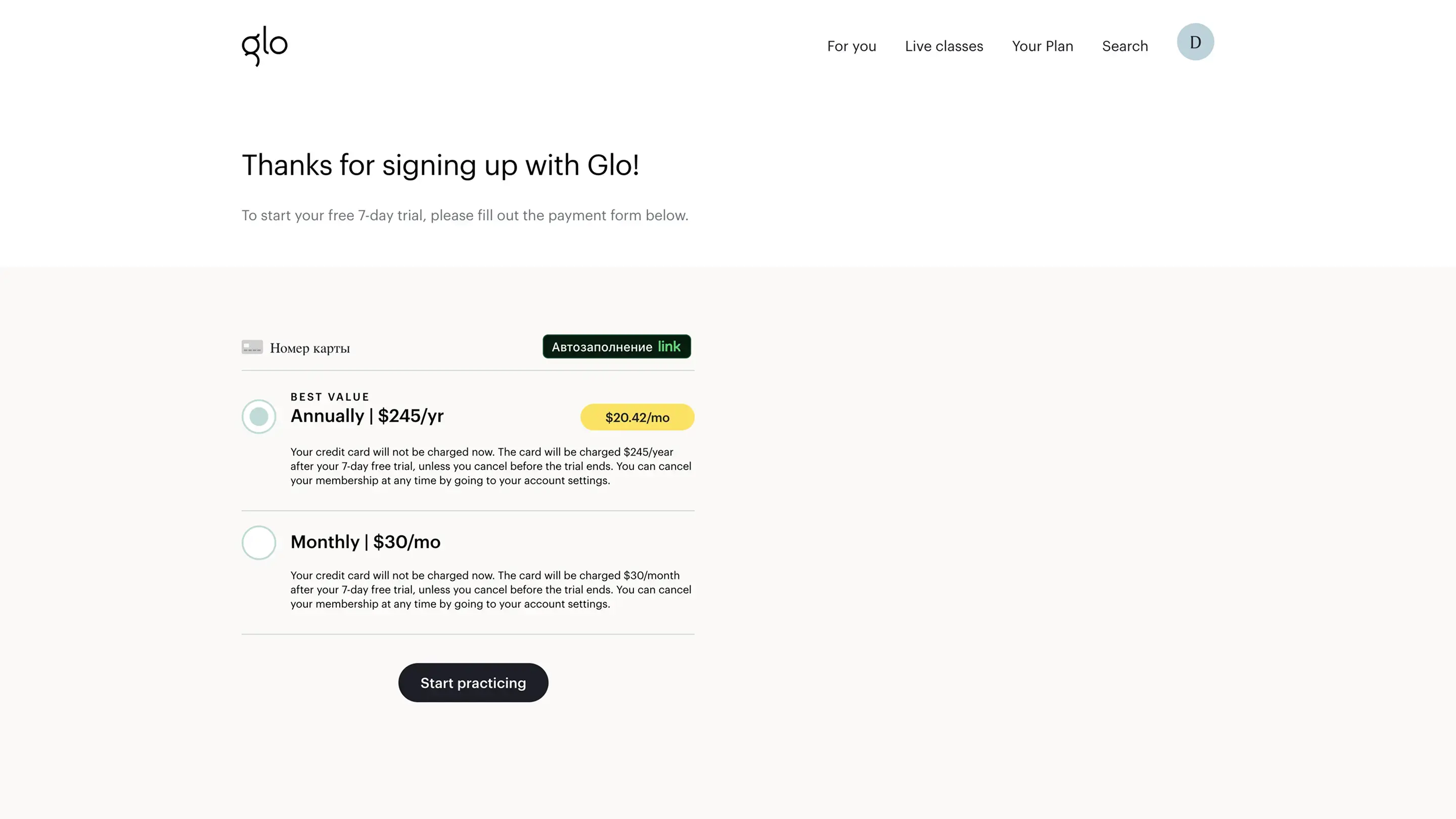 Страница тренировки