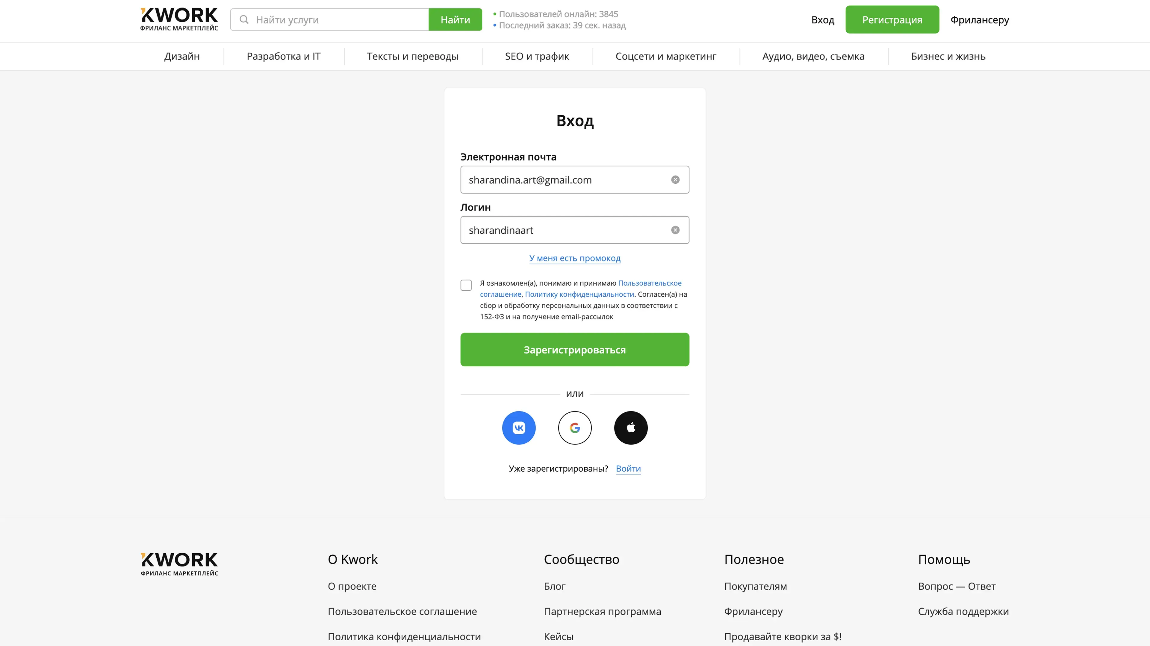 Вход / Регистрация