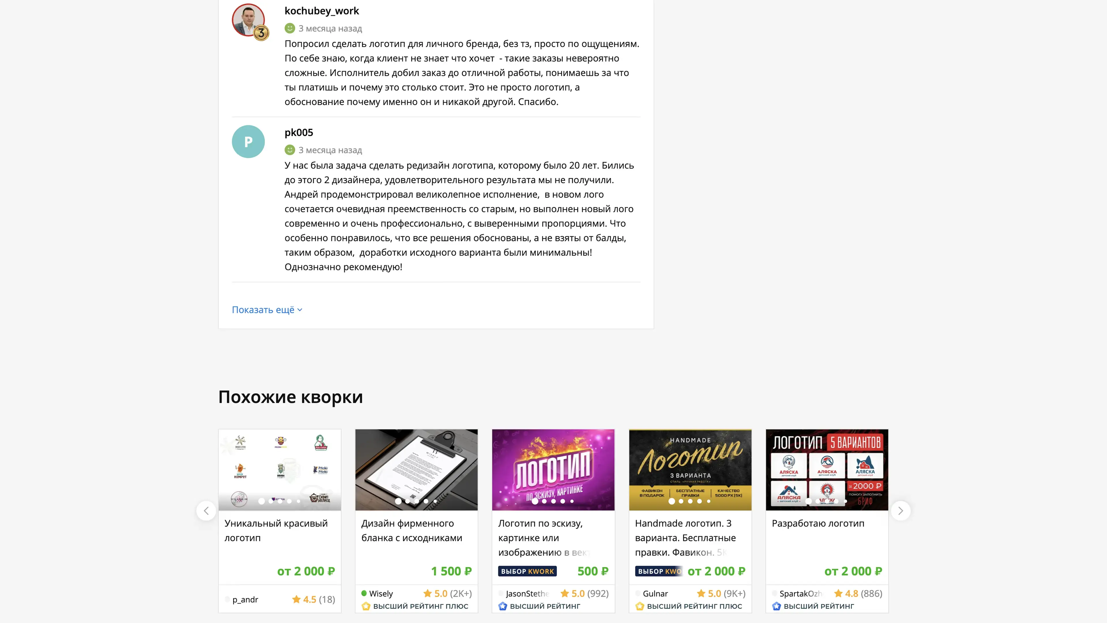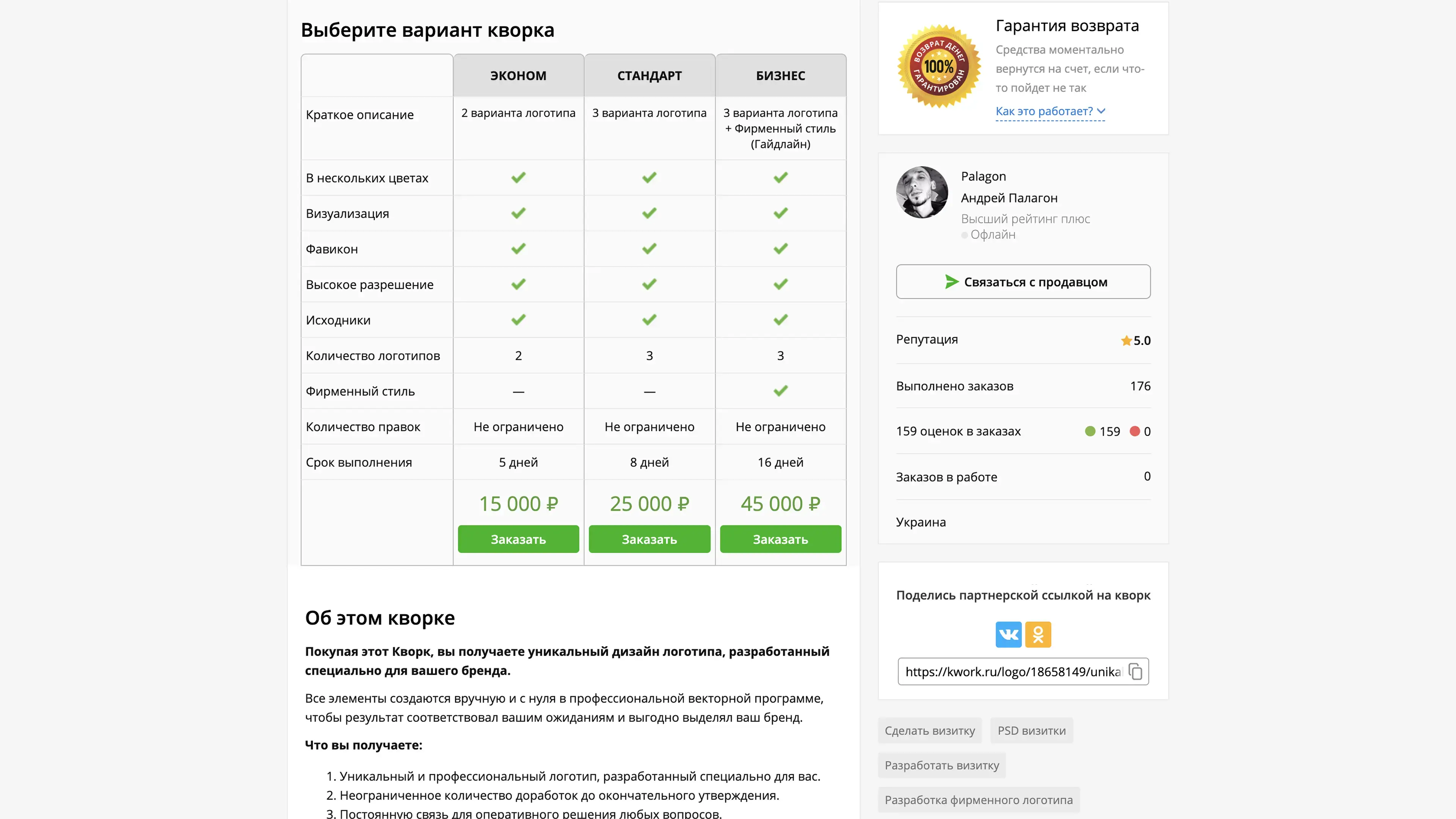 Страница продавца