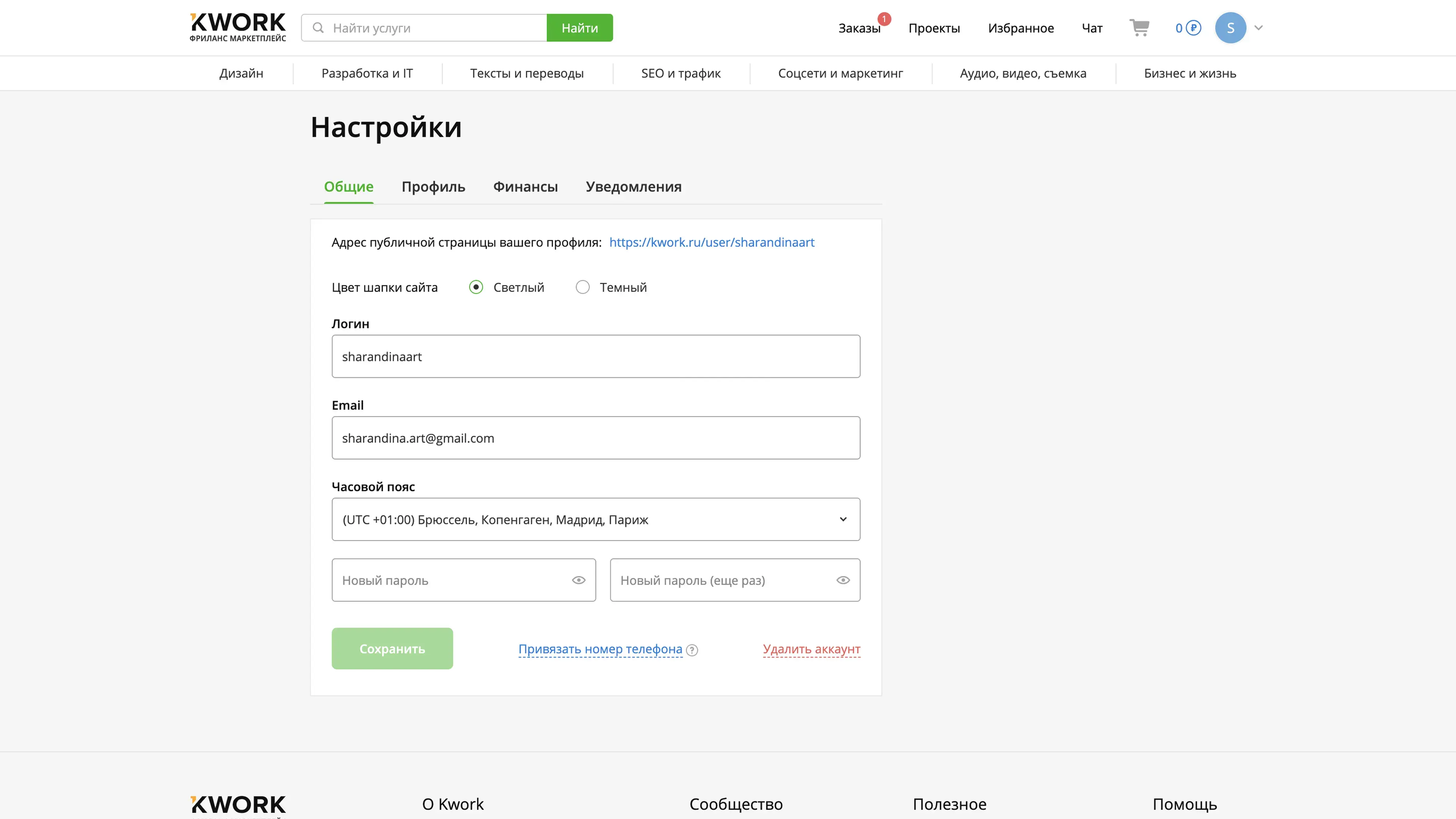 Профиль / Настройки
