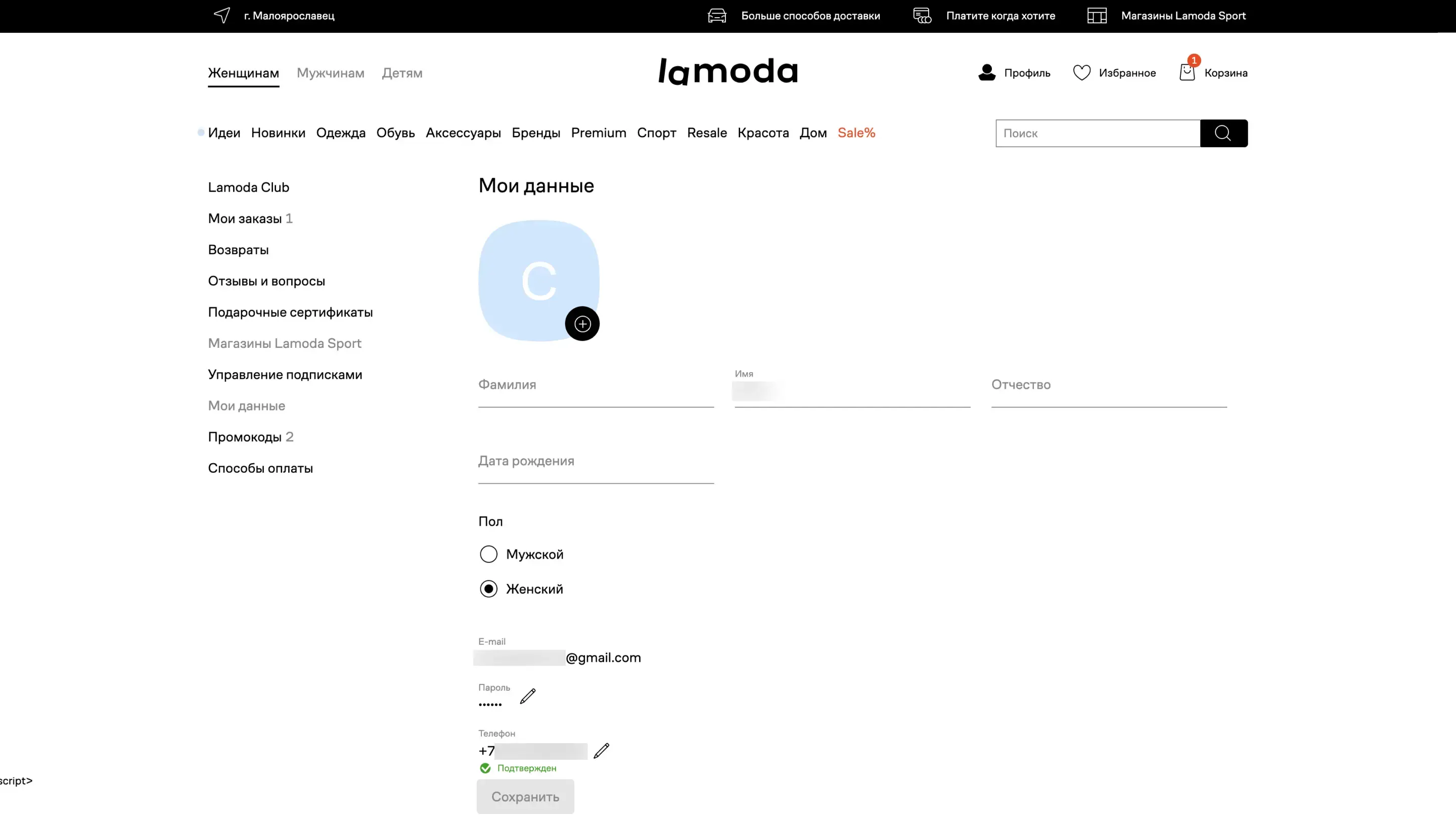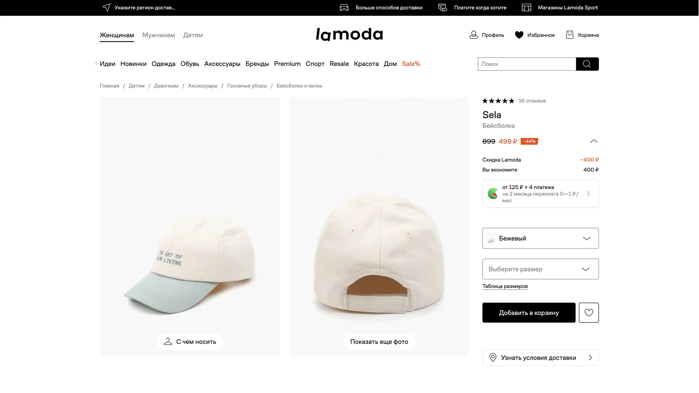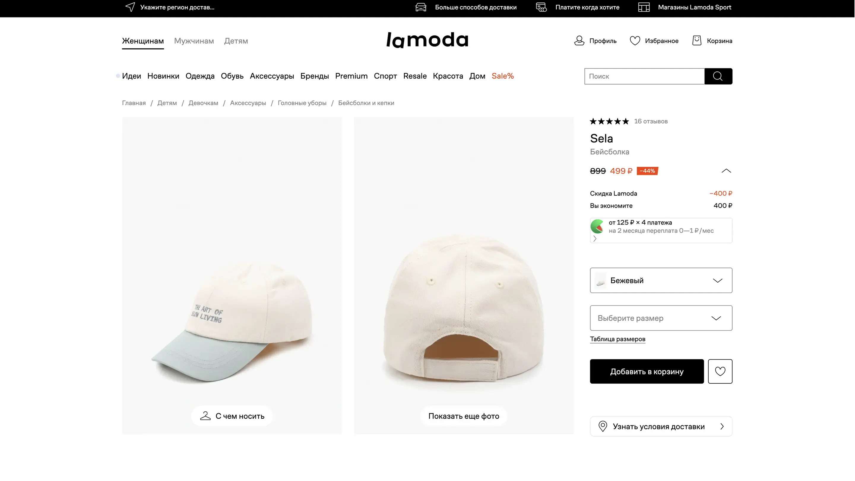 Страница товара