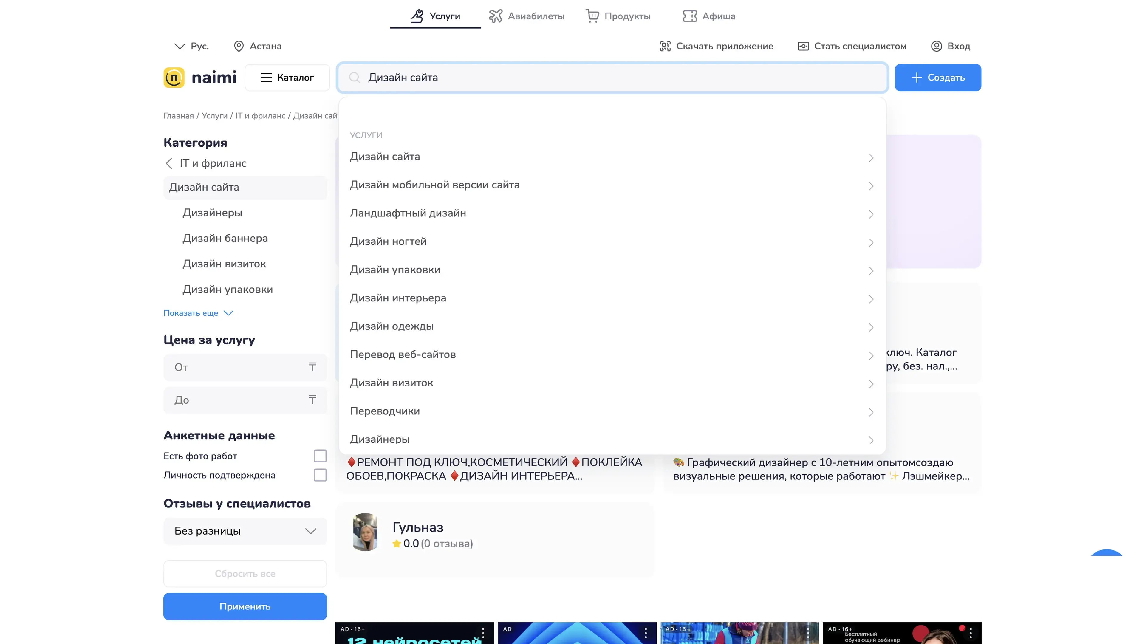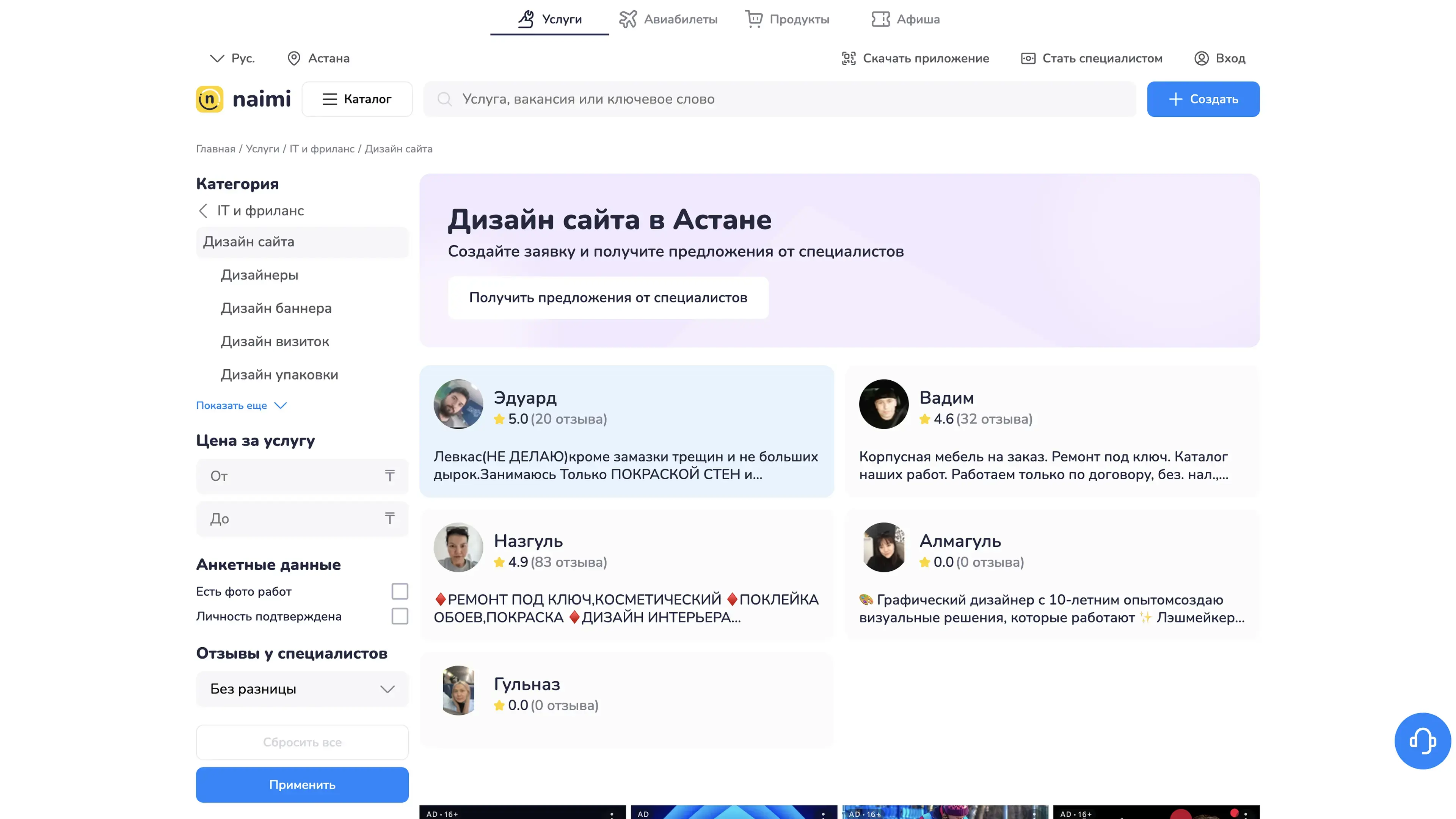 Страница исполнителя