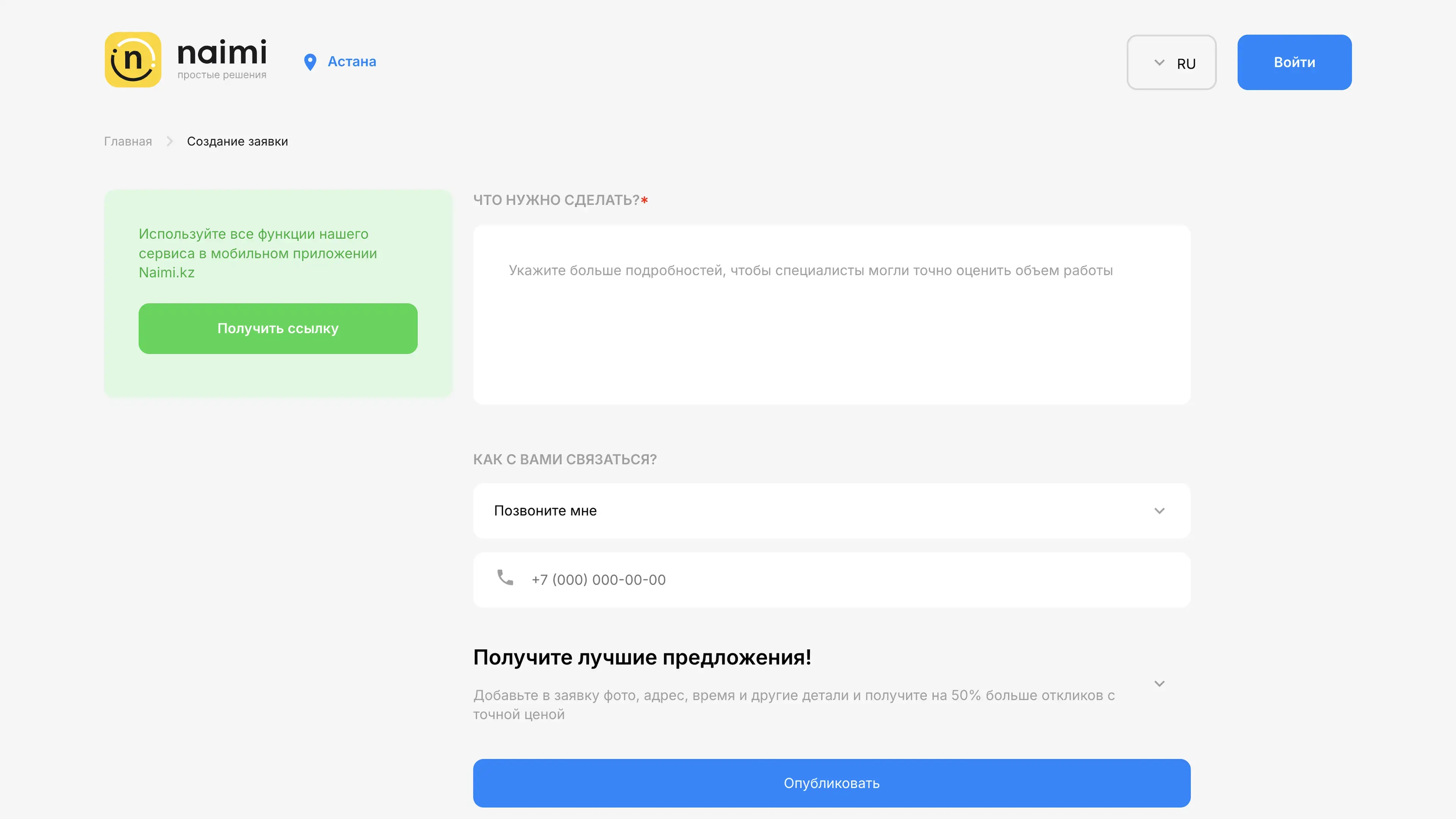 Создать заявку