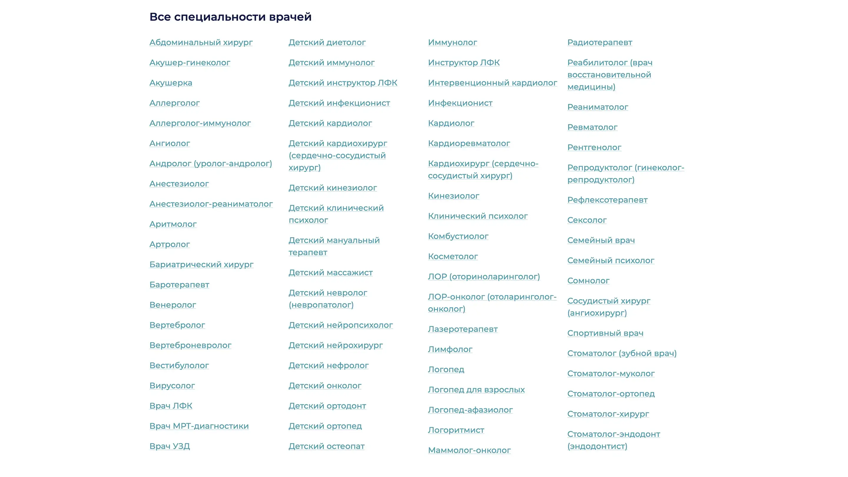 Каталог врачей