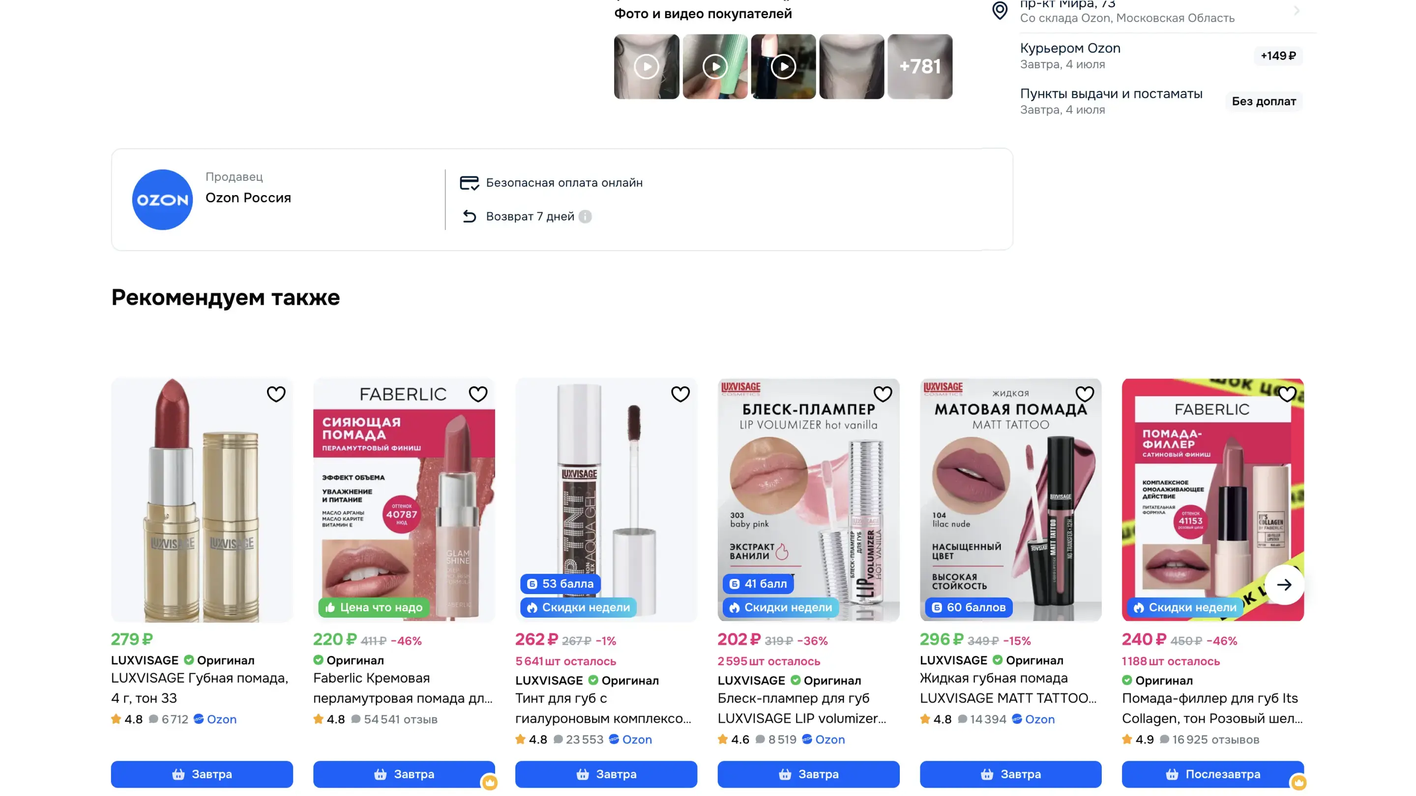 Страница товара
