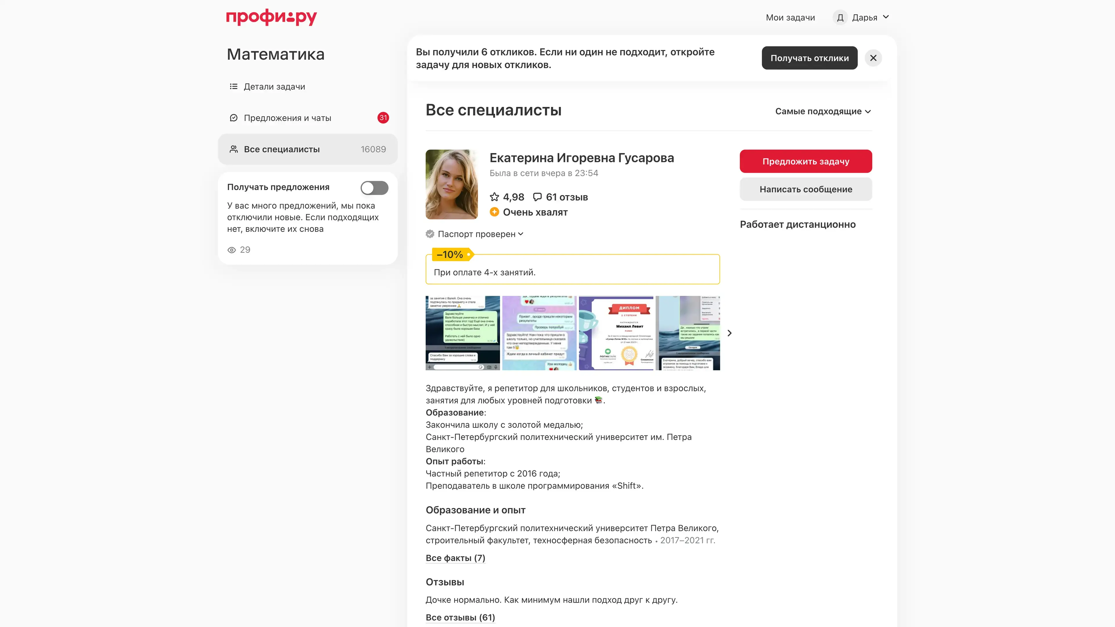 Предложения специалистов